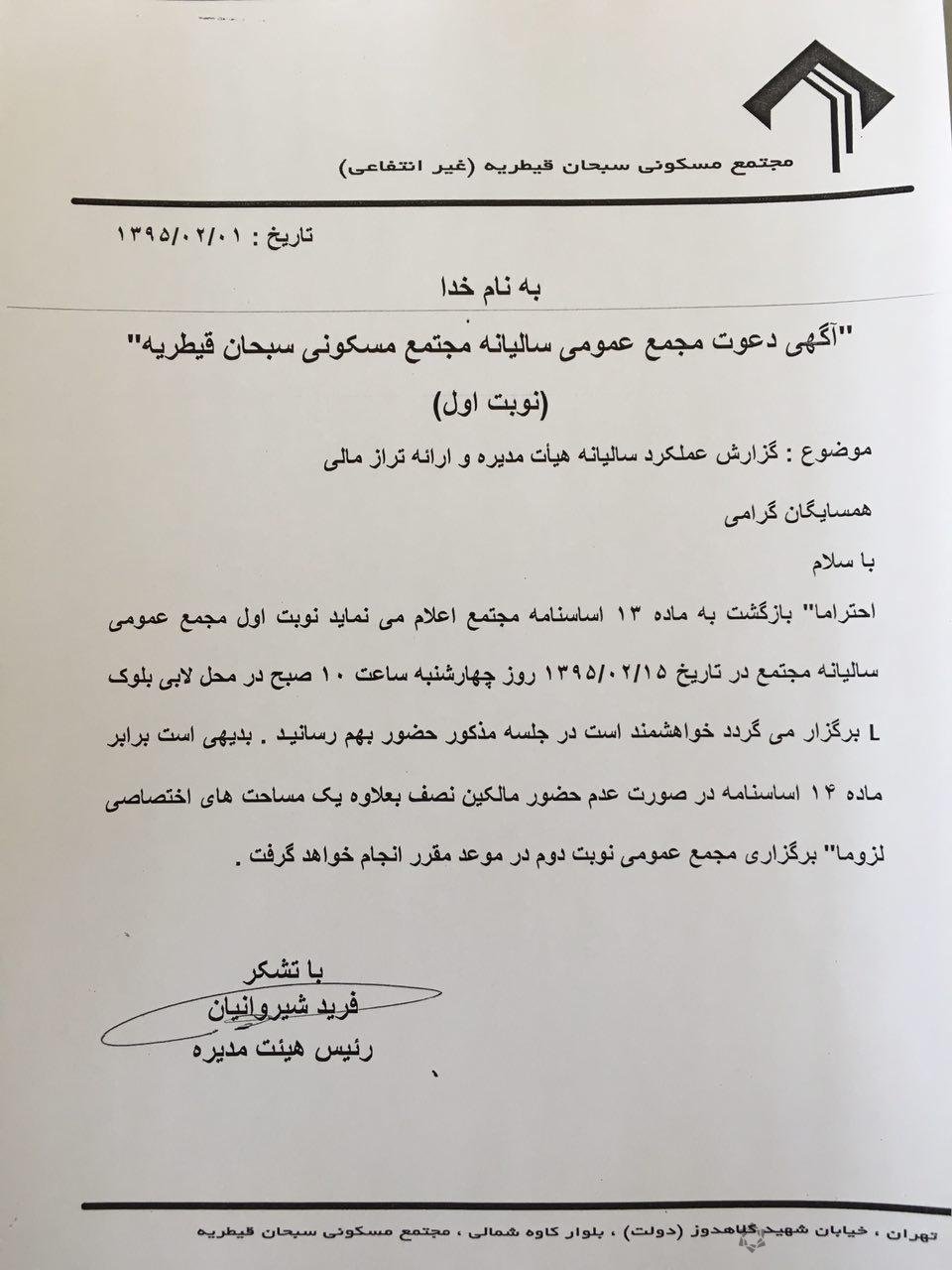 دعوت به مجمع عمومی سالیانه مجتمع(نوبت دوم)-97